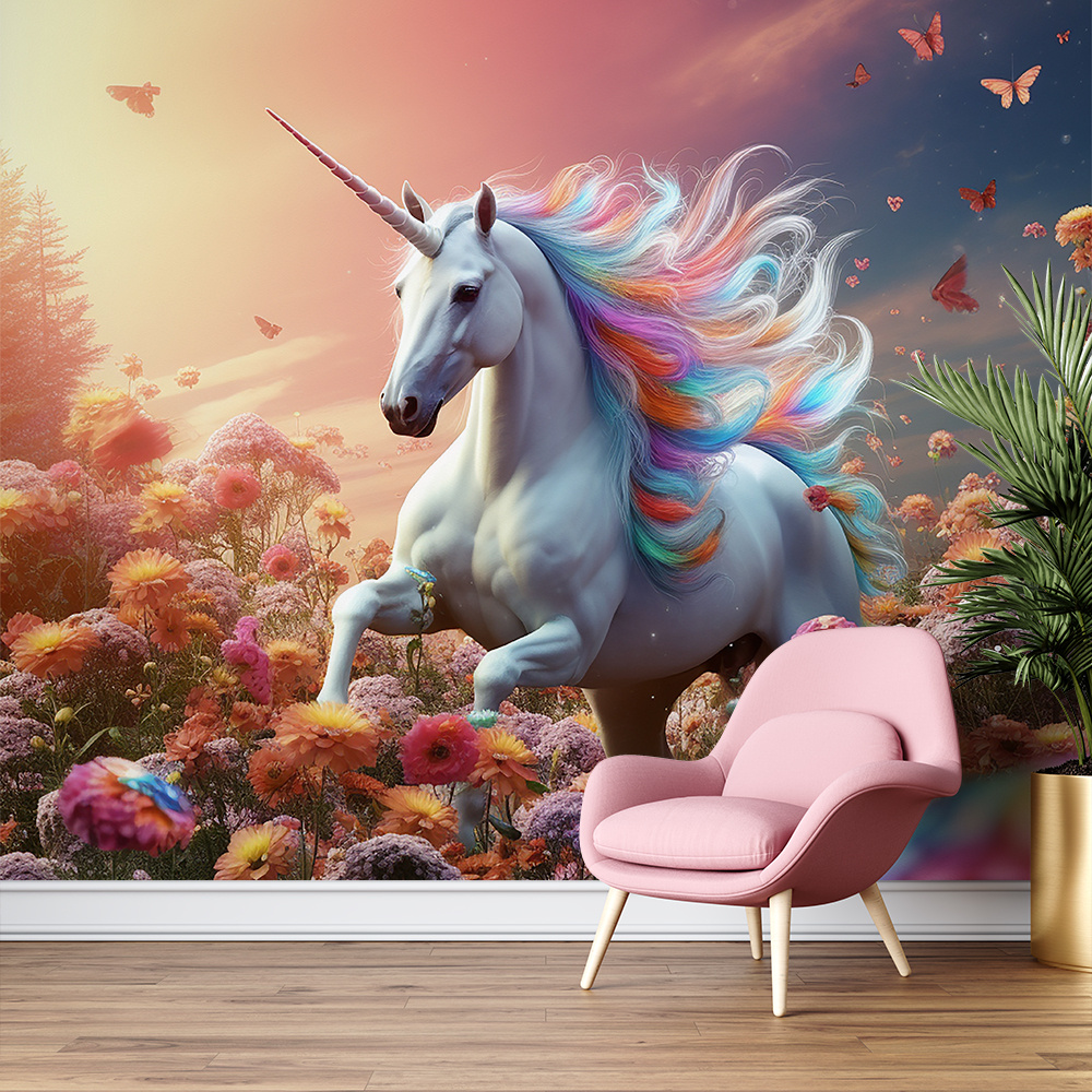 Versier de kamer van je kind met betoverende pracht met ons Unicorn behang. Dit levendige behang, met een speels patroon van kleurrijke eenhoorns en regenbogen, brengt een magische sfeer in elke ruimte. Gemaakt van hoogwaardig materiaal, is ons behang duurzaam en gemakkelijk aan te brengen, waardoor het een ideale keuze is voor zowel kinderkamers als speelruimtes. De heldere en levendige kleuren van het ontwerp zorgen voor een vrolijke en stimulerende omgeving, perfect om de verbeelding van je kind te prikkelen. Met dit Unicorn behang creëer je een betoverende wereld waar fantasie tot leven komt