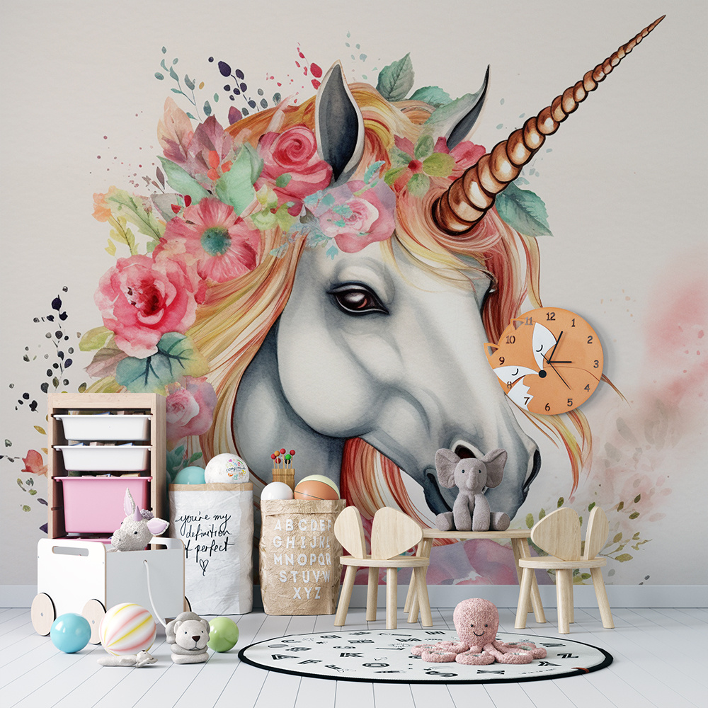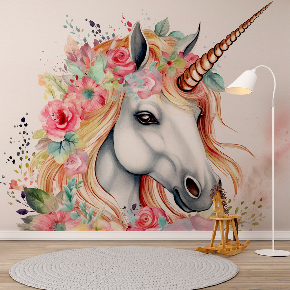 Transformeer elke kamer in een magisch paradijs met ons eenhoorn en bloemenbehang. Dit betoverende ontwerp toont een majestueuze eenhoorn temidden van kleurrijke bloemen, waardoor een sprookjesachtige sfeer ontstaat. Gemaakt van hoogwaardig behangmateriaal, biedt ons behang een duurzame en eenvoudige installatie. Het is afwasbaar en scheurbestendig, ideaal voor kinderkamers en speelruimtes. Voeg een vleugje magie en kleur toe aan je interieur met dit prachtige eenhoorn en bloemenbehang.