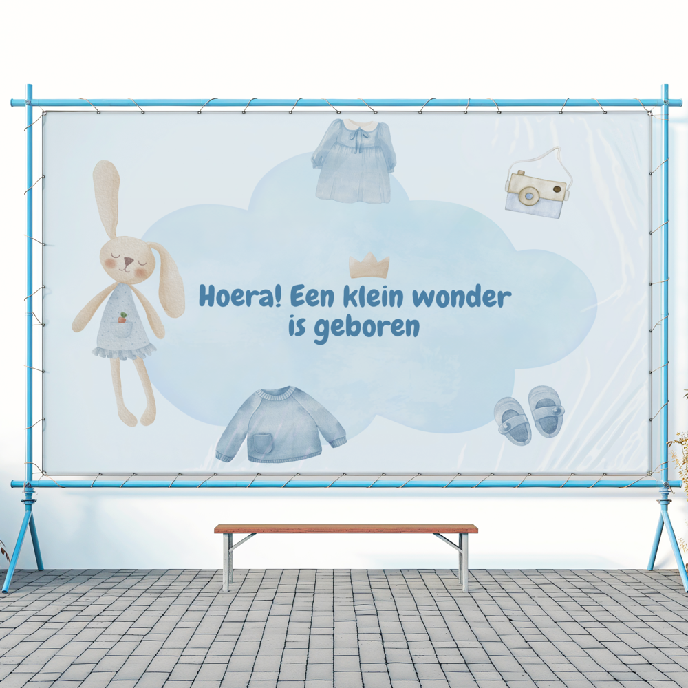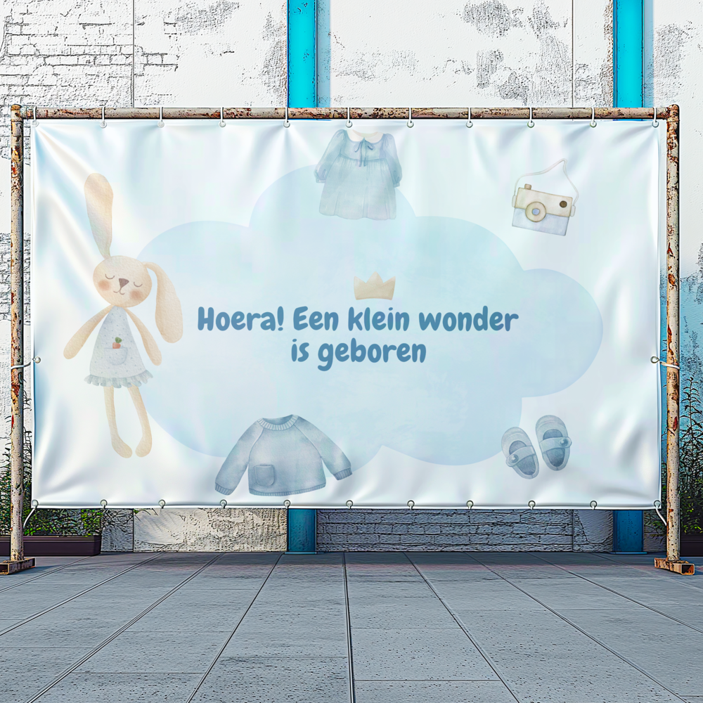 Geboorte spandoek Hoera een klein wonder is geboren