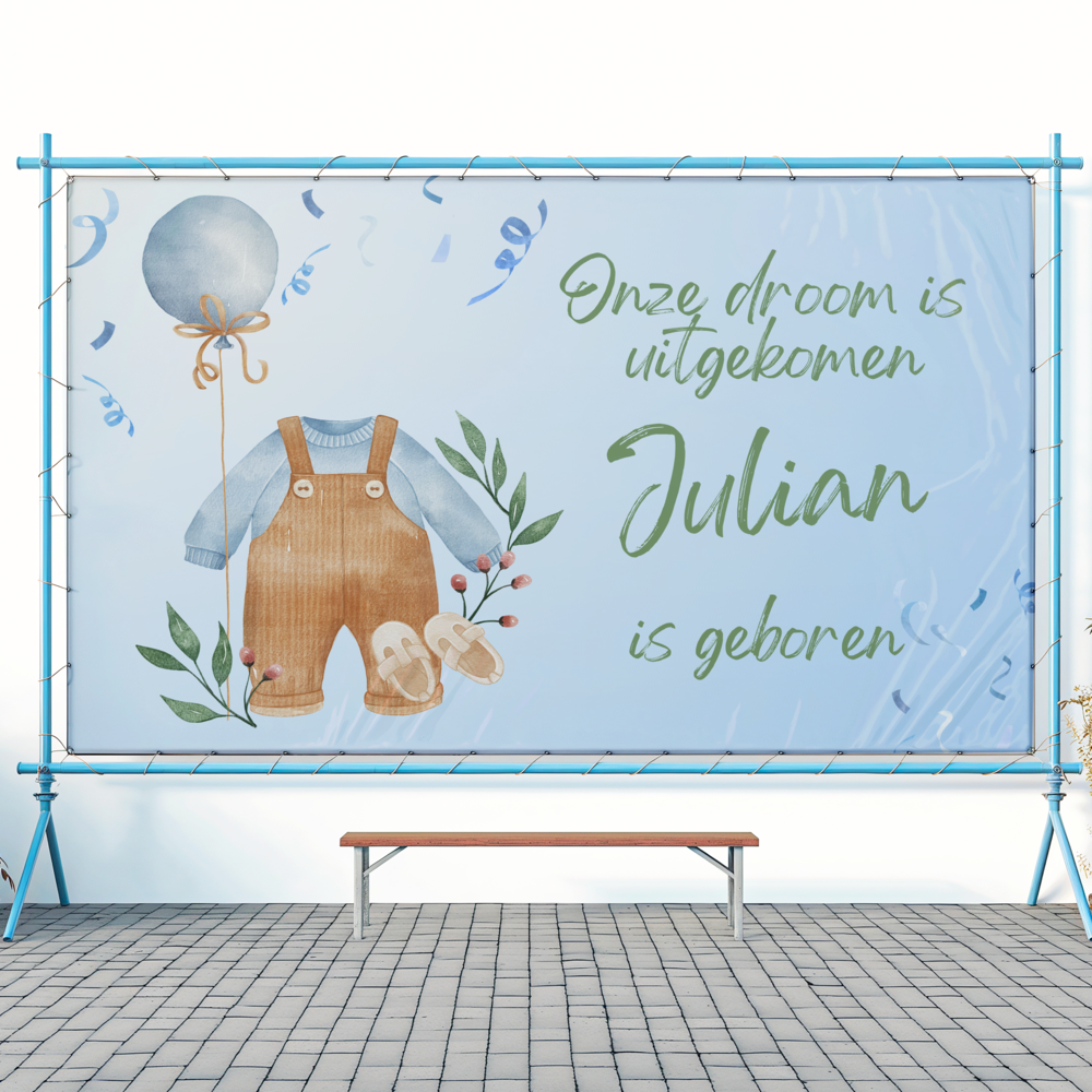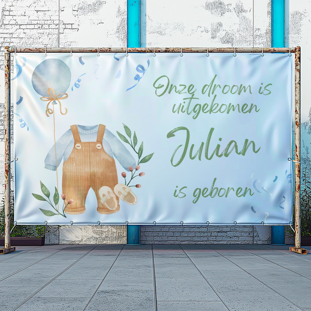 Geboorte spandoek Onze droom is uitgekomen (jongen)