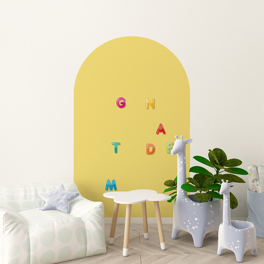 De lichtgele magnetische muurfolie kan op elke gewenste hoogte worden geplaatst. Voor de kinderkamer is het vaak prettig als de magnetische muursticker laag zit. Wil je deze in de woonkamer plaatsen en speelt je kind graag aan de eettafel? Dan kun je er natuurlijk ook voor kiezen om de magnetische muurfolie op de hoogte van het tafelblad te plaatsen. Deze keuze is helemaal aan jou!