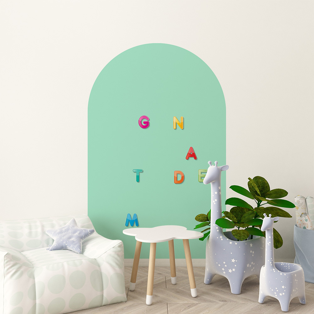 Deze magnetische muursticker in mintgroen is natuurlijk een geweldige optie voor thuis. Het zorgt echt voor een interactief speelelement in de kinderkamer of in de woonkamer. Je kunt de magnetische muursticker overal plakken waar je wilt, zolang de ondergrond schoon, droog en vlak is. De muurfolie hecht niet goed aan matte lak of verf, aan vuilafstotende verf of aan een wand met structuur en oneffenheden. Voor pas geschilderde muren adviseren we te wachten met het plakken van de magnetische folie tot een maand na het schilderwerk. De mintgroene magneetfolie is ook voor scholen, kinderverenigingen en kinderdagverblijven een leuke keuze. Kinderen kunnen zich er eindeloos mee vermaken en met educatieve magneten kunnen ze direct veel leren.