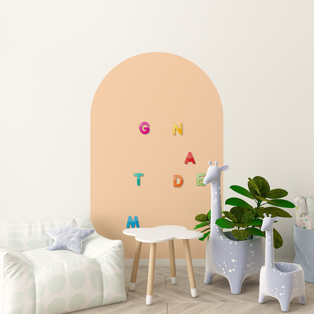 Magnetische muurfolie peach heeft een vrolijke, perzikachtige kleur die zeker past bij een kleurrijke kinderkamer. Elke kinderkamer wordt een leuk speelelement rijker met deze magnetische muursticker. Magnetisch speelgoed blijft goed zitten en kan makkelijk steeds worden gewisseld om de magnetische muurfolie interessant te houden voor lange tijd. De magneten worden niet meegeleverd. Je kunt er dus zelf op uit om de leukste magneten te kopen of natuurlijk gebruik maken van leuke magneten die nu misschien wel al op de koelkast zitten! Bij Muursticker4Sale kun je meer kleuren magnetische muurstickers online bestellen.