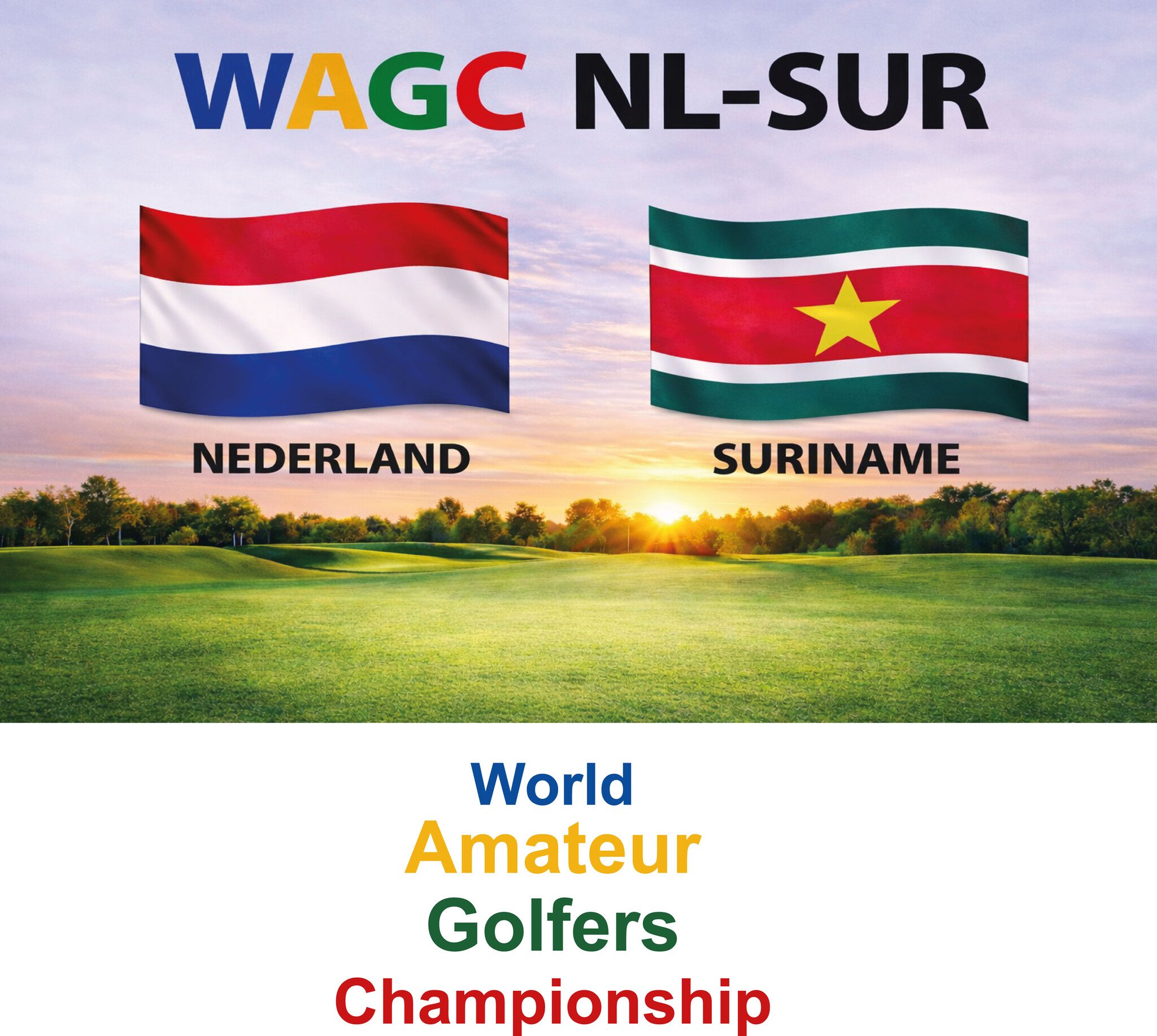 Ontwerp Stichting WAGC Suriname spandoek 240 x 160 cm met oogjes en Muursticker geprint op 90 x 90 cm