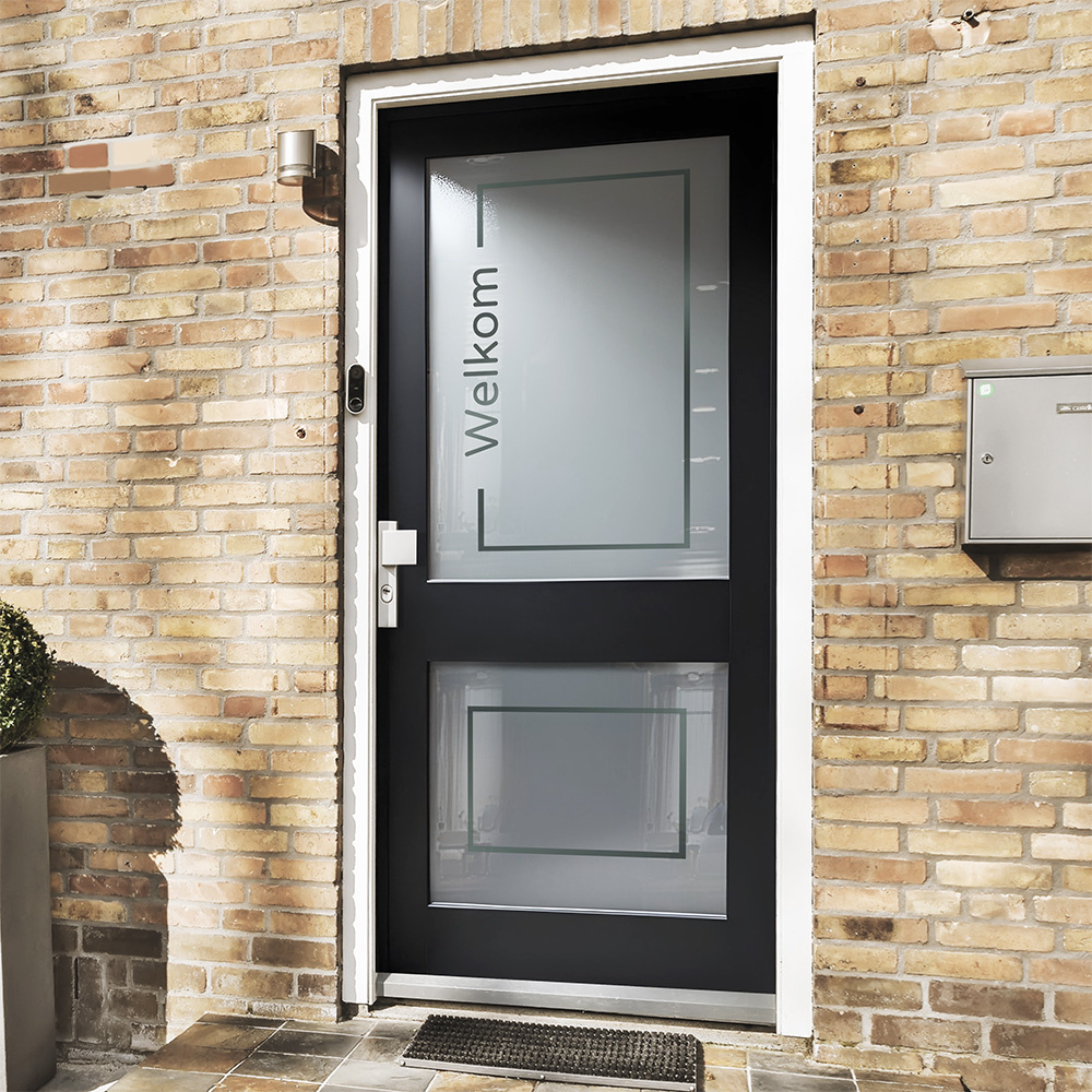 Met het raamfolie boven en onderraam Welkom geeft u bezoekers van uw woning direct een welkom gevoel. En niet in de eerste plaats omdat de tekst ‘welkom’ op de deur staat, maar ook vanwege het strakke effect dat dit raamfolie heeft. Dankzij het gezandstraalde folie ziet dit er heel strak uit en kunnen mensen niet naar binnen kijken. Het geeft dus als extra voordeel ook privacy en dat is ook heel wat waard. Dit raamfolie is ontworpen voor deuren met twee ramen: één groot en één klein raam.