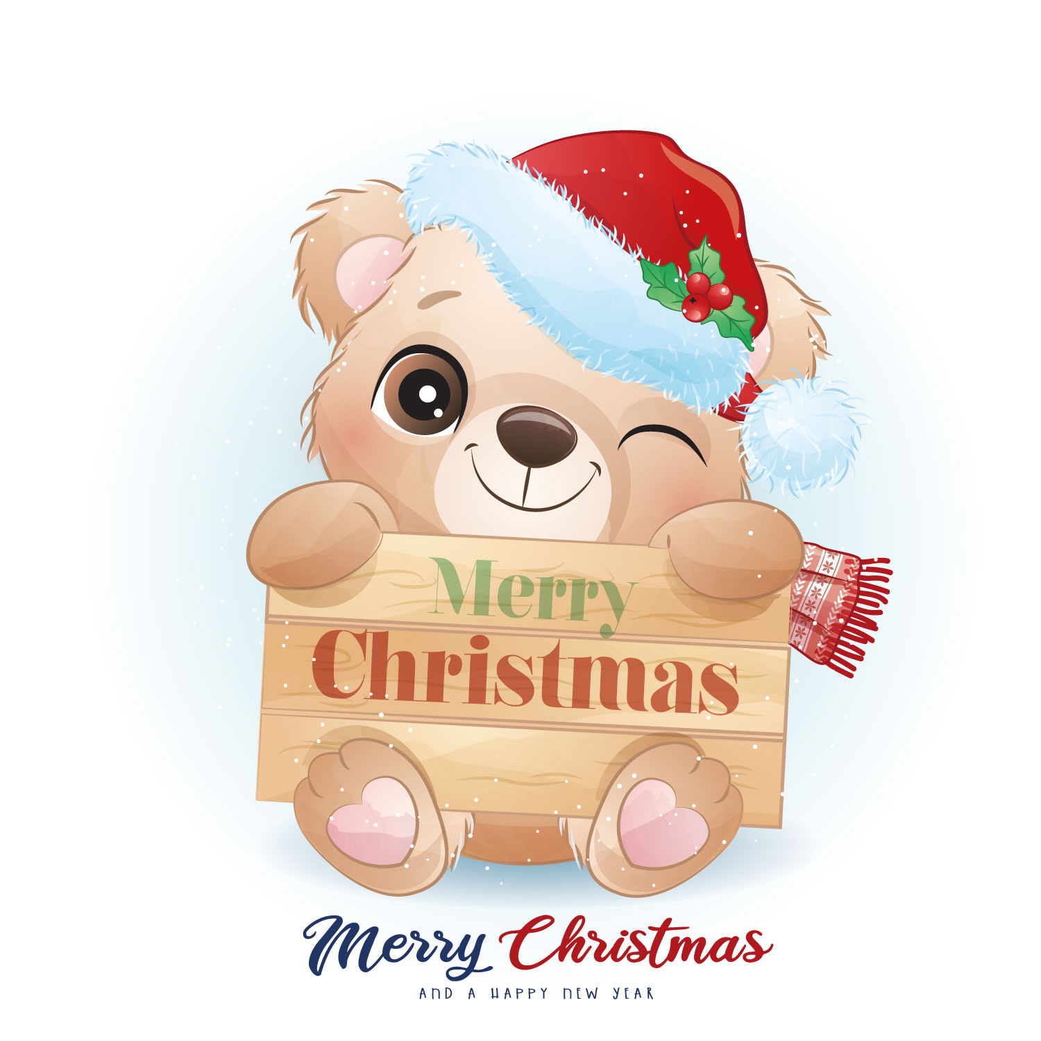 Kerst raamsticker Beertje met kerstmuts herbruikbaar