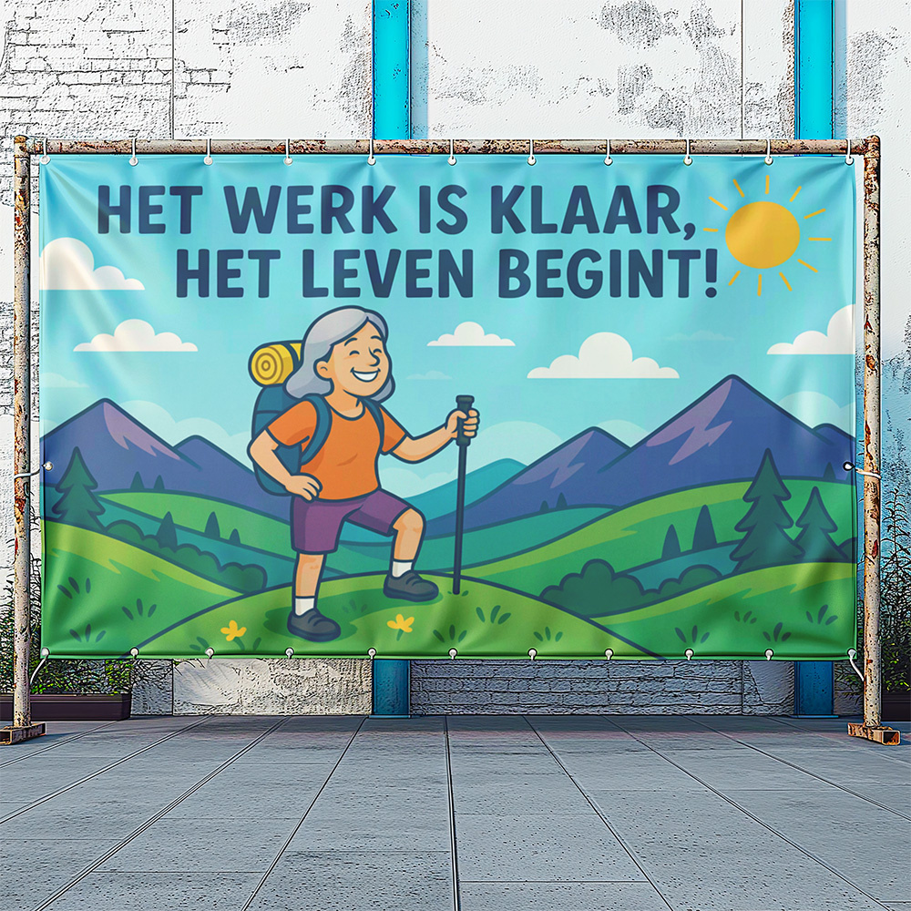 Spandoek het werk is klaar het leven begint! (vrouw)